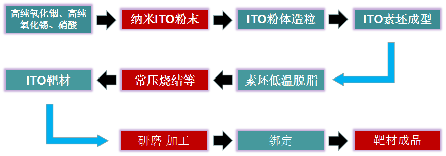 ITO靶材的燒結技術主要由以下幾種:常壓燒結法、熱壓法、熱等靜壓法(HIP)、微波燒結法、放電等離子燒結法等。