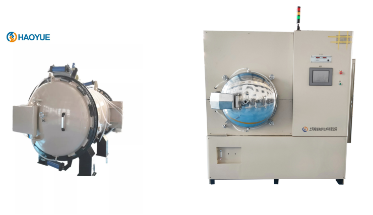 上海皓越自主研發(fā)的真空燒結(jié)爐(左)和真空熱壓爐(右)