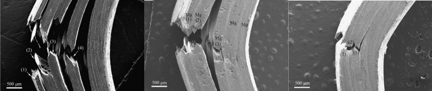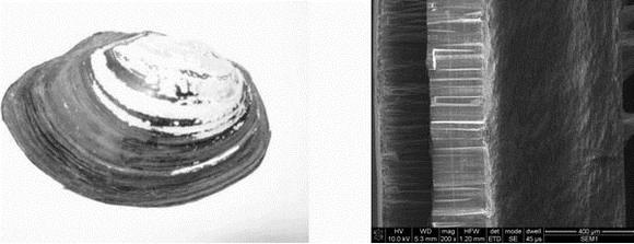 隨著科學技術(shù)的發(fā)展和進步,對材料的性能要求也越來越高,傳統(tǒng)材料由于結(jié)構(gòu)單一,綜合性能不夠突出,難以滿足對多性能耦合要求的服役環(huán)境。但是由多種不同性能的材料通過物理或者化學方法結(jié)合制備而成的復(fù)合材料,既能保持各組元材料獨特的性能,也能取長補短,產(chǎn)生協(xié)同效應(yīng),使新制備的復(fù)合材料綜合性能遠優(yōu)于各組員材料的性能,從而滿足不同復(fù)雜工況的要求。自然界中也有很多類似的結(jié)構(gòu),軟/硬相結(jié)合的多層結(jié)構(gòu)可以提高其強度硬度的同時也能有很好的韌性。下圖為貝類外殼的層狀結(jié)構(gòu)。